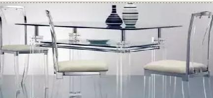 亞克力餐桌,簡單的開放式,透明的材質帶出輕快的感覺。