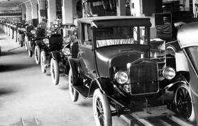 汽車生產(chǎn)發(fā)展為第一個批量生產(chǎn)行業(yè)。最初,技工們憑借幾個世紀(jì)積累的技術(shù)制造汽車。在汽車制造初期,兩三個工人一組手工制造汽車,零部件由其他公司供應(yīng)。但是,隨著需求的增長,汽車行業(yè)被迫轉(zhuǎn)型,用機(jī)器大批量生產(chǎn)價格低廉產(chǎn)品的呼聲越來越高。亨利·福特起到了催化劑的作用。福特于1863年出生于密歇根州農(nóng)村,在照明公司工作前曾是工程師學(xué)徒。他發(fā)明了由汽油發(fā)動機(jī)驅(qū)動的自力推進(jìn)式汽車,并命名為“老爺車”,1903年,福特創(chuàng)建了福特汽車公司。
