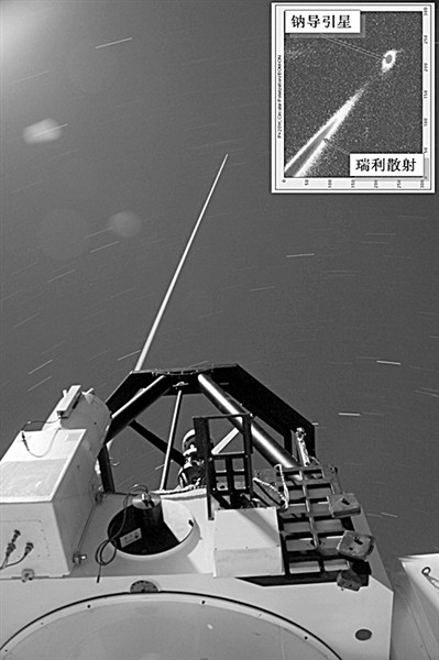 對于大型地基光學望遠鏡來說,天上亮度足夠作為信標的自然亮星數量很少,導致能夠看清晰的星空區域很有限,為了能清晰地觀測更廣闊的星空,天文學家又想出用“激光鈉信標”的辦法,即從地面發射一束黃色激光,來激發海撥約100公里高空中的鈉原子發出很強的熒光,從地面看就像顆人造亮星,稱為“鈉導引星”或“鈉信標”。