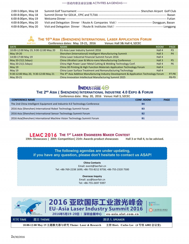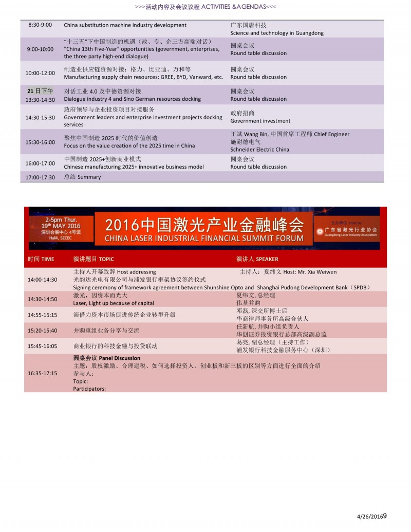 5月19日-21日,第十屆亞洲(深圳)國際激光智能制造展&論壇將在鵬城深圳會展中心3-4號館隆重舉辦,本屆展覽包括的活動精彩紛呈,以亞洲激光論壇與工業4.0技術大會為主題...