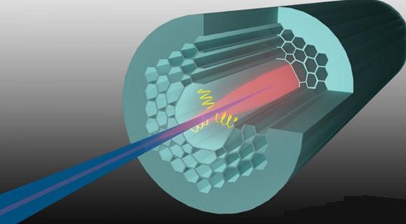 “微尖結構放置的位置恰好能使光注入到空芯光纖中,而不用任何電子或其它系統設備維持,”羅素說。“如果任何組件移動了一點,激光器不會有影響,因為微尖結構具有自校準和自穩定特性。”