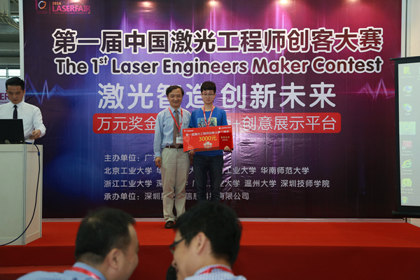5月19日下午“第一屆中國激光工程師創(chuàng)客大賽”在深圳會(huì)展中心4號(hào)展館圓滿落幕。本屆創(chuàng)客決賽總共有來自4個(gè)地區(qū)5所院校8支參賽隊(duì)伍。創(chuàng)客專區(qū)是本屆展會(huì)的新增亮點(diǎn),決賽現(xiàn)場更是人氣火爆,經(jīng)過現(xiàn)場選手們的展示,7位評委的專業(yè)點(diǎn)評后,最終來自深圳技師學(xué)院的《激光秀舞蹈培訓(xùn)工作室》獲得了本次大賽的一等獎(jiǎng)。