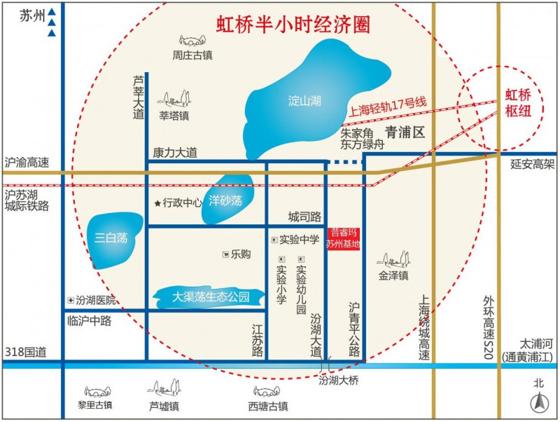 與普睿瑪蘇州基地相關的幾個關鍵詞:智能裝備制造基地、虹橋副中心、水城、宜居、古鎮、新汾湖新業態新城區。