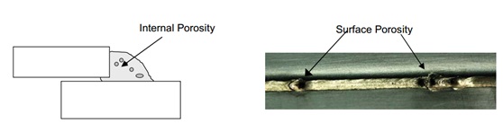 對于頂蓋激光釬焊來說,氣孔產生的原因主要是第一種,可能是雜質受熱分解,也可能是鍍鋅層蒸發不完全而造成。氣孔分為表面氣孔和內部氣孔,內部氣孔看不到,通常肉眼直接能看清的為表面氣孔(圖3所示)。