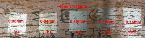 可以看出,隨著填充間距的變大,清洗后基體表面顏色越來暗,表面清洗效果越來越差。而間距變小時,基體出現(xiàn)燒損變黃。