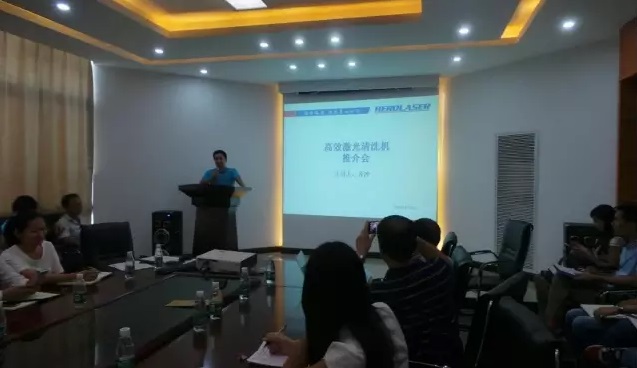本次內(nèi)部發(fā)布會由激光清洗機項目負責人齊主管主講,詳細深入的講解了激光清洗機的原理、特點、優(yōu)勢,與傳統(tǒng)工業(yè)清洗方式的對比,展現(xiàn)了大量的除銹、脫漆樣品對比圖片。