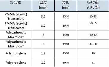 表1:波長(zhǎng)為1540nm和1940nm時(shí)透明聚合物的吸收率