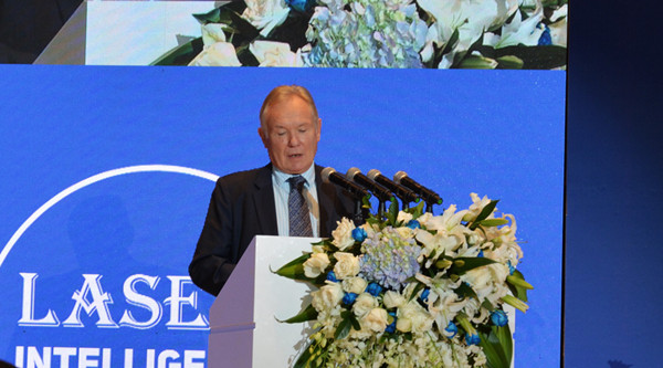 上午10:30,世界光纖激光之父 David N Payne爵士,和各高校的校長分別發(fā)表演講,從學(xué)者的角度探討了激光與智能制造領(lǐng)域的技術(shù)與趨勢。David N Payne爵士更是以自己的親身經(jīng)歷,為眾人簡要闡述了光纖激光技術(shù)的發(fā)展歷史,探討了光纖激光技術(shù)的前景。接著由大族集團(tuán)副總裁、大族激光智能裝備集團(tuán)總經(jīng)理陳燚先生發(fā)表“創(chuàng)新引領(lǐng),智造未來”的報告,結(jié)束了上午的議程。