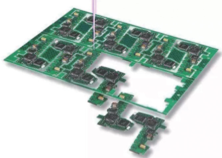 切割斷點分板,激光系統會通過一個前面所述的加工過程切斷連接點。這個切割過程可緊挨靠近邊緣的元器件進行,對于較厚的電路板來說也是非常經濟的。