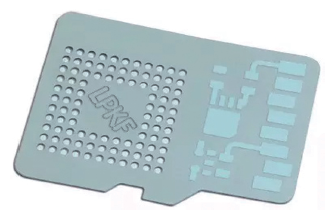 類似的過程也適用于FPC覆蓋膜。覆蓋膜通常由聚酰亞胺以及厚度為25μm或12.5μm的膠層構成,且容易變形。單個區域(例如焊盤)無需覆蓋膜遮蓋,以便后期進行裝配、連接等工作。