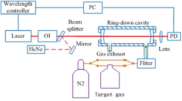 基于脈沖光腔衰蕩技術(shù)的痕量氣體檢測(cè)實(shí)驗(yàn)裝置示意圖
