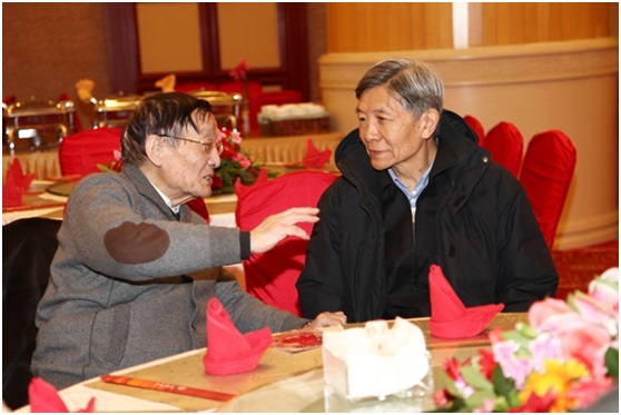 圖12、簡水生院士(左)與李天初院士(右)在團拜會上親切交談。