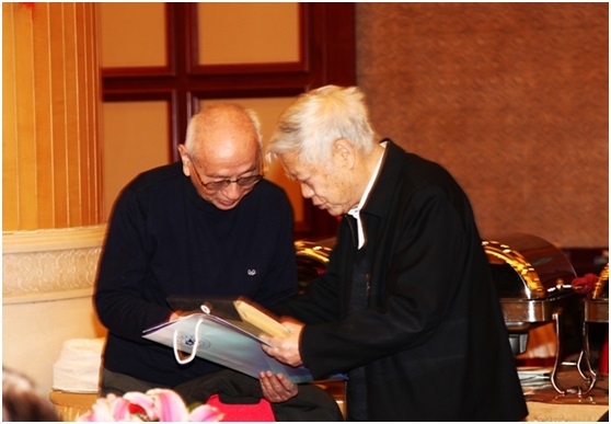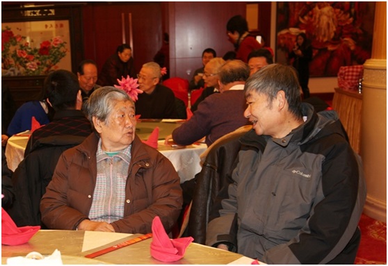 圖15、學會常務副理事長梁志遠教授(右)與91歲高齡的中國激光醫學界元老、北京光學學會專家委員會副主任盛林(左)在團拜會上親切交談。
