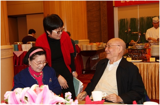 圖11、金國藩院士(中)和夫人段老師(左),與姚駿恩院士(右)在團拜會上。