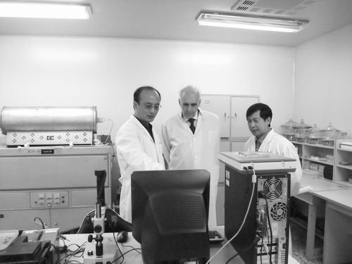 諾貝爾獎獲得者、俄羅斯科學院院士阿爾費羅夫(中)來實驗室交流參觀。