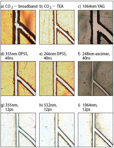 因而,面臨的問題總是:“對于手頭的應(yīng)用,怎么樣的質(zhì)量是足以應(yīng)對的”?由于紅外波長具有更多的可用功率并且其光子的成本小于UV 光子,所以該波長被用于大多數(shù)應(yīng)用。然而,如果要求呈現(xiàn)最高質(zhì)量和/或展現(xiàn)最小的特征尺寸時,UV波長則是非常有用的。通常,當更高的功率對目標質(zhì)量具有價值時會使用皮秒激光器。