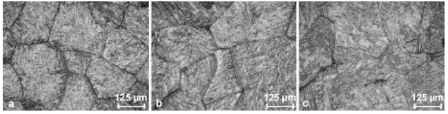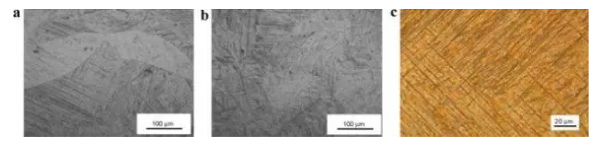 圖3.2 FZ的組織:(a)0.8kW,17mm / s,(b)1 kW,50mm / s, (c)是b中的馬氏體結構