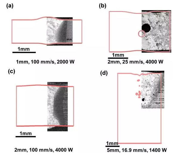該研究認為,匙孔激光焊接時,氣孔可能是匙孔后面流體湍流的結果,相關的雷諾數越大,氣孔形成的可能性就越高。對于這種流體流動控制的氣孔,降低匙孔附近流體流動的雷諾數,可以有效地減少或避免氣孔。