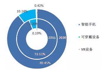 2016/2020年智能設(shè)備出貨量比例測(cè)算