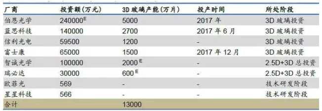 國(guó)內(nèi)主要加工廠商開(kāi)始投資3D玻璃生產(chǎn)線