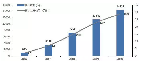 2016-2020年熱彎?rùn)C(jī)新增數(shù)量及累計(jì)數(shù)量預(yù)測(cè)(臺(tái))