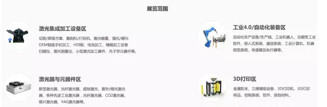 分5個展區:3D打印展區、焊接切割應用展區、精密加工與追溯應用展區、智能制造展區、品牌展區等。彰顯我國激光和智能制造的魅力和活力。