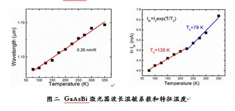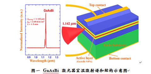 稀鉍半導體材料具有一系列不同于傳統(tǒng)三五族材料的優(yōu)良特性,是一種富有潛力的新型光電器件材料,也是當前國際上研究的熱門領域之一。其中鎵砷鉍材料由于其較大的帶隙收縮效應、自旋軌道分裂能和較低的溫敏性等特點,被認為是光通訊系統(tǒng)中非制冷激光器最具潛力的新材料之一。但是,為了有效凝入鉍組分,鎵砷鉍材料生長需要較低溫度,這就容易導致缺陷密度增大從而影響材料的發(fā)光性能,激光器材料生長有極大挑戰(zhàn)。上海微系統(tǒng)所吳曉燕、潘文武等人基于分子束外延技術優(yōu)化生長了高質量的鎵砷鉍量子阱材料,成功制備較高性能的鎵砷鉍量子阱激光器,發(fā)光波長拓展到1.142微米,同時其特征溫度和波長溫敏系數(shù)均優(yōu)于當前商用的InP基激光器。該項研究有助于推動新型稀鉍材料在光電器件領域的應用。