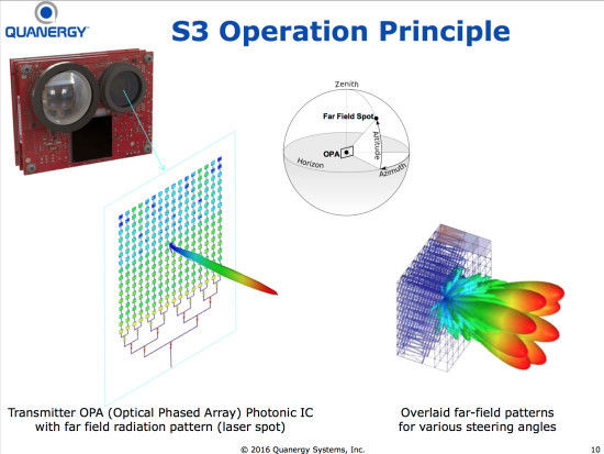 一邊解決舊問(wèn)題,而另一邊新的技術(shù)解決方案又出現(xiàn)了:固態(tài)激光雷達(dá),在今年 CES 2017 上,Quanergy 公司的 Solid State LiDAR S3 獲得了汽車智能類的最佳創(chuàng)新獎(jiǎng),而這也是源于它的固態(tài)掃描技術(shù)。