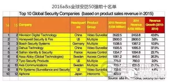 下圖是在《安全與自動化》公布的“全球安防50強”排名。