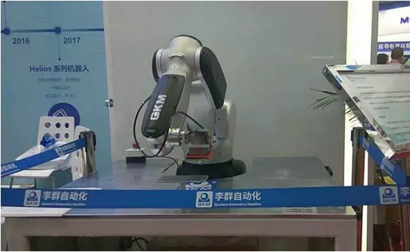 李群自動化在技術上不斷精益求精,這次帶來的參展展品為小六軸機器人Helios配合3M研磨材料對手機金屬后蓋進行打磨,采用一體機設計能夠在最大限度上減少外置線路引起的干擾,搭載移動式導軌,安裝更加便利,后期維護更容易。