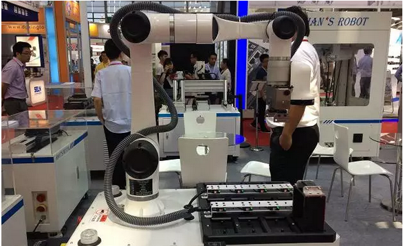 華南自動化展是安川集團和美的集團自2015宣布戰略合作后,首次共同亮相的展會。在安川美的GP7和GP8兩款自動化機械臂的展臺前人潮涌動,結合當下熱門的手機電子行業,GP7和GP8在運動曲線、機械臂長和速度等性能上能夠更加貼合現在自動化生產的專業需求。