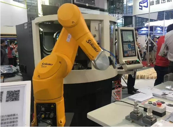 固高科技(香港)有限公司在展館上展出的云平臺精密五軸加工機及機器人上下料展示,占地面積不到3平方米的緊湊設計,將刀庫、切削液系統及電主軸冷卻系統全部整合在機床底座內,使用效率最大化,不受限制的發揮工業4.0的優勢。