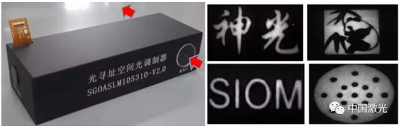 圖 光尋址液晶空間光調制器實物圖(左)和 近場空間強度分布控制效果圖(右)