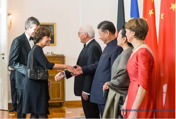 通快集團(tuán)作為工業(yè)4.0的創(chuàng)始成員以及全球智能制造先鋒企業(yè),受邀出席會(huì)談后的慶祝晚宴。照片為習(xí)近平主席與夫人彭麗媛女士,德國(guó)總統(tǒng)施泰因邁爾夫婦親切接見(jiàn)通快總裁Nicola Leibinger-Kammueller博士與丈夫Mathias Kammueller博士。