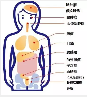 對常規光子放療不敏感,并且解剖位置復雜,手術創傷大的部位的腫瘤,如頭頸部的腺樣囊性癌和黑色素瘤、顱底和骶骨的脊索瘤、胰腺癌等。