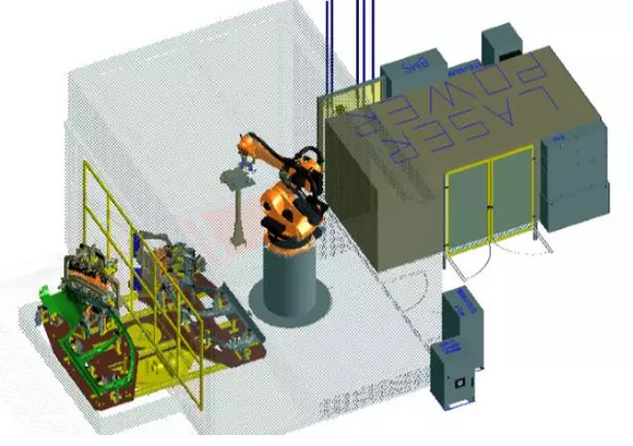 上汽大通SK81/91車型車頂激光釬焊項目,主要設備包括激光器IPG YLS-4000,激光頭SCANSONICALO3,FAUNC機器人,該工作站一臺機器人用于頂蓋上件,兩邊各有一臺機器人用于激光釬焊,另外一臺機器人用于頂蓋夾具取放動作,生產節拍30JPH,焊接工位之后有自動打磨工位,目前項目處于量產階段。