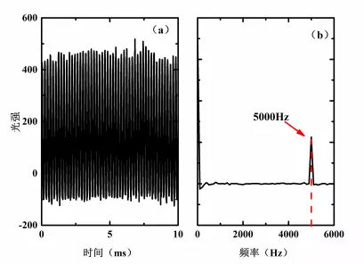圖3(2) 5 kHz單音下所測信號時域圖及頻域圖