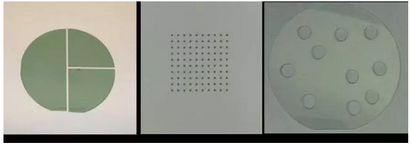 圖1 超快激光切割碳化硅(左)鉆孔柔性陶瓷(中)切割藍寶石(右)