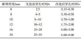 當我們對機床的硬件和軟件進行改造后,在穿孔效率上提高明顯,表 2 為改造前后的時間對比。