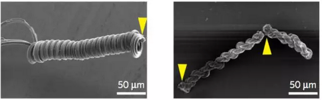 至于處于這兩條線之間的激光,其功率則可以成功的讓蜘蛛絲半融化,體積稍微擴大一圈;在照射偏離中心的位置時,還能讓蜘蛛絲進行彎曲。通過對照射時間的控制,研究人員們可以精準控制彎曲的具體度數。目前,他們已經用蜘蛛絲成功做出了螺線管、彈簧、以及復雜的結扣。