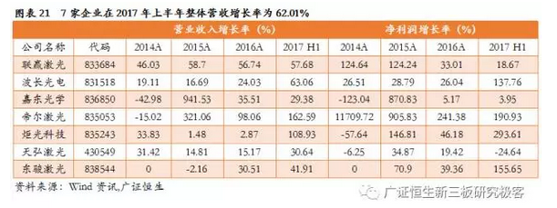 【重點推薦】2017/08/22發布的激光加工報告推薦7家公司,營收增長62.01%(整體法)