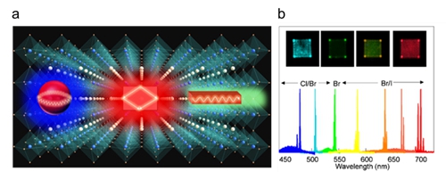 a 不同維度鈣鈦礦微型激光器;b 可見光波段調諧的高品質激光器