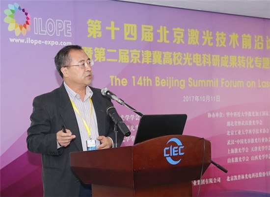 為促進我國激光技術(shù)及產(chǎn)業(yè)的發(fā)展,北京光學學會與中國光學光電子行業(yè)協(xié)會、北京光機電一體化協(xié)會、中國光學學會激光加工專業(yè)委員會、北京生產(chǎn)力促進中心和北京華港展覽有限公司六單位合作,于2017年10月11日在北京中國國際展覽中心成功舉辦“第十四屆北京激光技術(shù)前沿論壇”。激光界知名專家、激光前沿論壇共主席中國光學學會激光加工專業(yè)委員會主任王又良研究員,中國光學學會副秘書長顧波,北京光學學會常務副理事長梁志遠、副理事長兼專家委員會主任郭少陵、秘書長劉寶勝,兄弟學會有關(guān)領(lǐng)導,北京光機電一體化協(xié)會常務副理事長陳端業(yè)、副理事長歷寶華,廣州光學學會理事長張慶茂教授,上海激光學會副秘書長張偉研究員,中國光學學會激光加工專委會副秘書長劉善琨教授,天津光學學會秘書長桑梅教授,江西省光學學會秘書長劉國棟教授,廣東省激光行業(yè)協(xié)會秘書長邵火,溫州激光行業(yè)協(xié)會會長、奔騰激光(溫州)有限公司總經(jīng)理吳讓大,以及北京光學學會專家委員會副主任劉永楨、張育川,學會青年工作委員會主任林學春等,與來自全國從事激光技術(shù)研究的科研院所、大專院校的專家、學者,激光產(chǎn)品生產(chǎn)、使用單位的專家或企業(yè)負責人,以及首都激光界、制造業(yè)人士200余人出席了本屆論壇的交流。