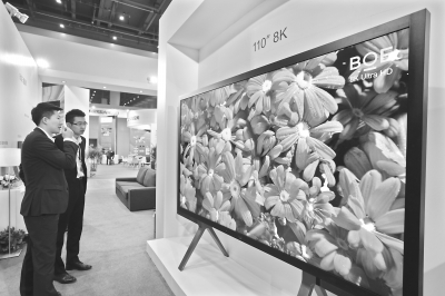 “京東方”展示的全球領先的8K全系列超高清顯示屏 記者詹松 攝