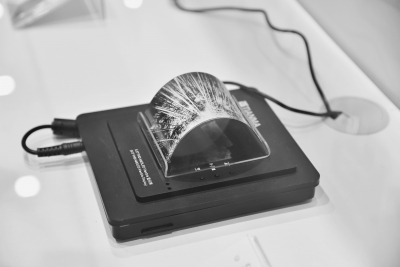 一塊厚度不足0.2毫米的顯示屏以超過200度的角度彎曲折疊,畫面依然能清晰顯示。“京東方”工作人員介紹,這種屏幕柔性顯示技術將與可穿戴設備等緊密結合,可以把顯示屏貼在水杯上,嵌入衣服、背包、珠寶里。
