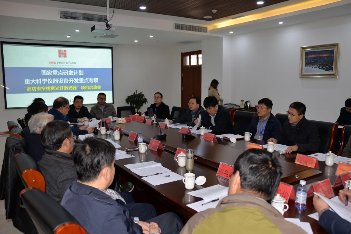 國(guó)家重大科學(xué)儀器設(shè)備開發(fā)重點(diǎn)專項(xiàng)“高功率窄線寬光纖激光器”項(xiàng)目啟動(dòng)會(huì)在海富光子召開
