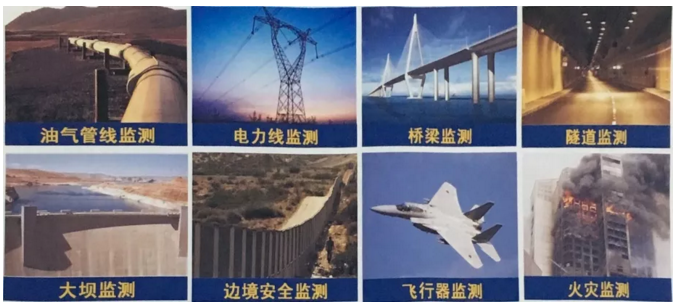 分布式光纖傳感可以實(shí)現(xiàn)在空間上的連續(xù)測(cè)量,具有測(cè)量距離長(zhǎng)、定位精度高等特點(diǎn),可測(cè)量溫度、應(yīng)變和振動(dòng)等,應(yīng)用監(jiān)測(cè)領(lǐng)域包括:油氣管道,高壓電纜光纜,地質(zhì)災(zāi)害(山體滑坡、泥石流等),橋梁、大壩和隧道等大型建筑物以及火災(zāi)報(bào)警等。
