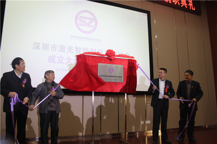 中國工程院院士范滇元(左二)、寶安區副區長高志遠(右二)等為深圳市激光智能制造行業協會揭牌。