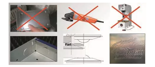 另外一個極其重要但又常常被人忽略的關(guān)鍵點(diǎn)是:使用數(shù)沖設(shè)備可以有效避免整個生產(chǎn)流程中,由于激光加工的局限性所衍生的二次加工問題(圖1),從而提高產(chǎn)品的全局生產(chǎn)效率。很多只配備激光切割機(jī)的車間,必須要在其他加工設(shè)備上完成后續(xù)百葉窗、凸包、沉孔以及其他一些可以顯著提高板材零部件附加值的成形工藝。因此,車間又不得不投資更多的人力物力、車間面積以及越來越多的二次加工設(shè)備。有時,這些衍生出來的二次加工會占用數(shù)千工作小時,由此增加了很大一部分隱形生產(chǎn)成本。