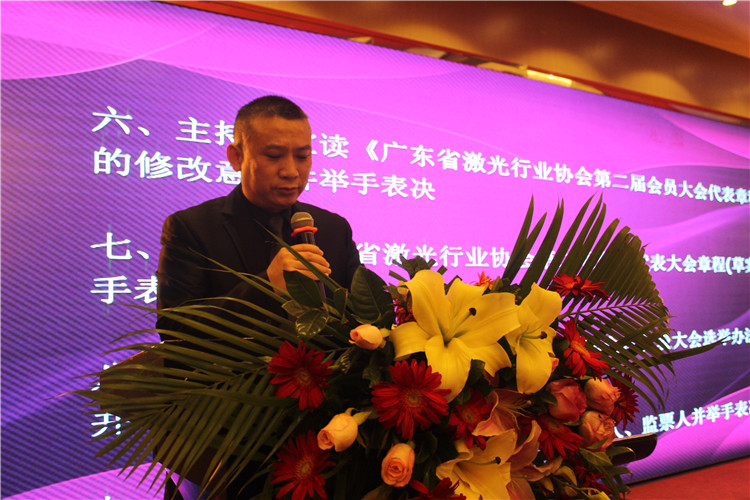 協(xié)會(huì)秘書(shū)處陳明新宣讀《廣東省激光行業(yè)協(xié)會(huì)第二屆會(huì)員大會(huì)代表章程(修改意見(jiàn)稿)》等多項(xiàng)制度,并主持現(xiàn)場(chǎng)表決